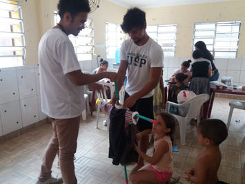 As atividades estão acontecendo em período vespertino, de três a quatro vezes por semana, na primeira plataforma do terreno da Fazendinha, acompanhado de quatro monitores com crianças de 04 a 13 anos.