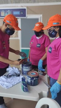 No último módulo de pintura, as fazendeiras de ambas as comunidades foram convidadas a realizarem um curso de pinturas especiais no espaço da CASACOR, no Allianz Parque (zona oeste de São Paulo), em parceria com as Tintas Coral.